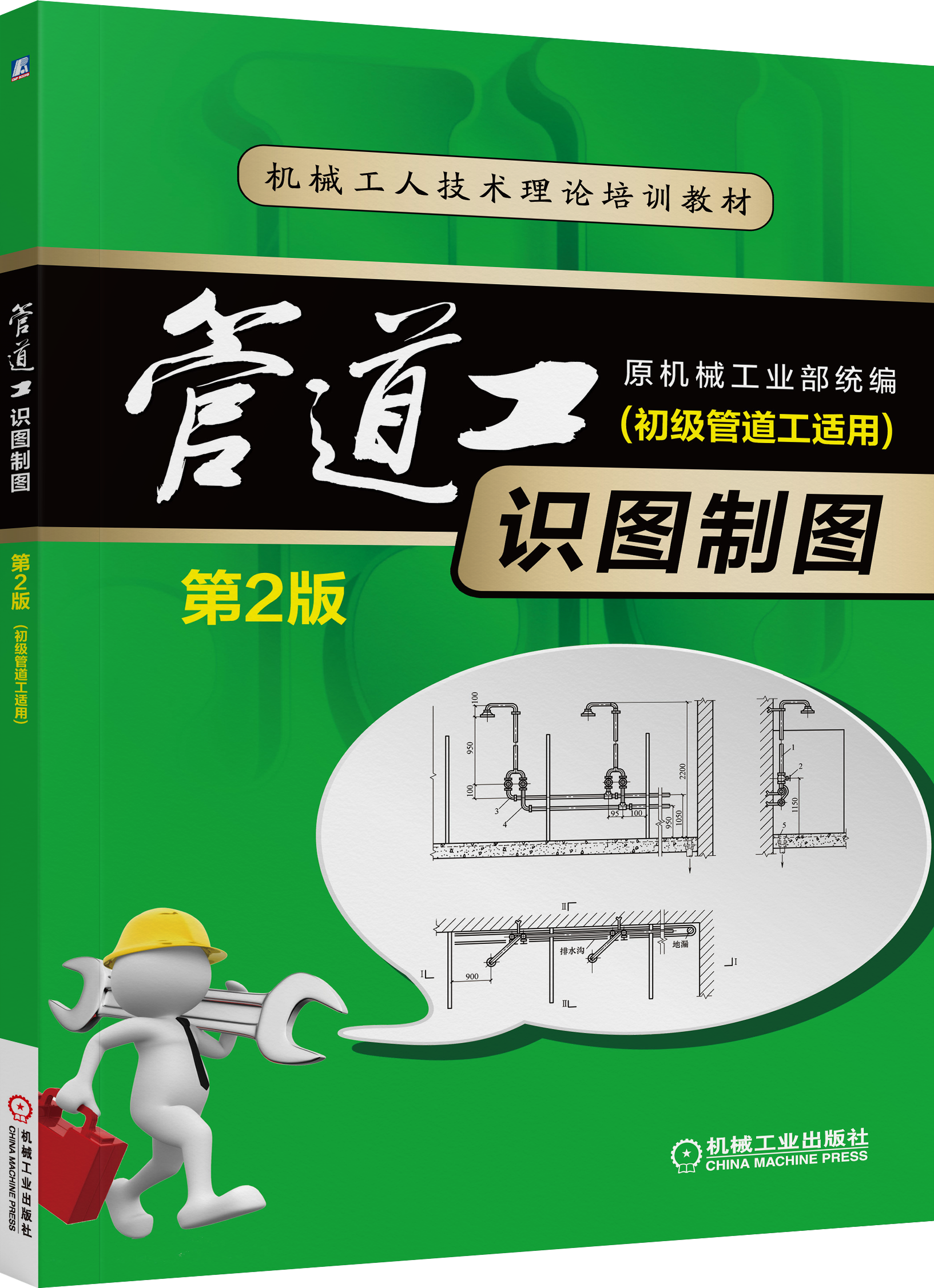 机械工人技术理论培训教材 管道工识图制图 (初级管道工适用) 第 2 版 原机械工业部统编 主编姜湘山 参编郝红李刚班福忱 机 械 工 业 出 版 社本书采用现行国家和行业标准,较系统地介绍了各种不同类型的管道工程施工图的识读和制图知识。内容包括:识图制图基本知识,管道施工图基本知识,管道平、剖面(断面)图与管道轴测图,机械零件图,建筑施工图,给水排水、采暖、空调、制冷工程施工图,动力(站)房管道施工图,管道配件展开图。 本书可作为从事管道安装、维修工人的培训教材或自学用书,也可供从事管道工种的管理和技术人员参考。