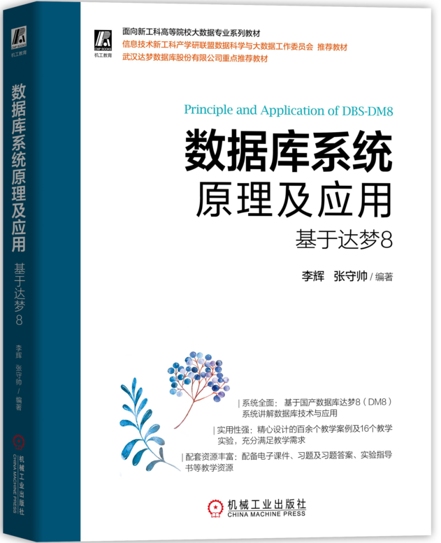 本书基于达梦数据库(DM8)全面系统地讲述了数据库技术和应用。全书共15章,内容包括数据库系统概述,关系代数与关系数据库理论,数据库设计与实现,DM数据库体系结构,DM数据库创建与配置,DM数据库的表定义与完整性约束,数据的插入、修改与删除,DM数据库单表与多表查询,视图和索引定义与管理,DM数据库用户、权限与角色管理,DM数据库的事务管理,DM数据库的备份和还原,函数和游标,存储过程和触发器,DM JDBC编程与应用等内容。通过本书,读者可以充分利用DM数据库平台深刻理解数据库技术的原理,达到理论和实践紧密结合的目的。 本书既可作为本科计算机相关专业数据库课程的配套教材,也可以供参加数据库类考试的人员、数据库应用系统开发设计人员、工程技术人员及其他相关人员参阅。对于非计算机专业的本科院校,如果希望学生学到关键、实用的数据库技术,也可采用本书作为教材。