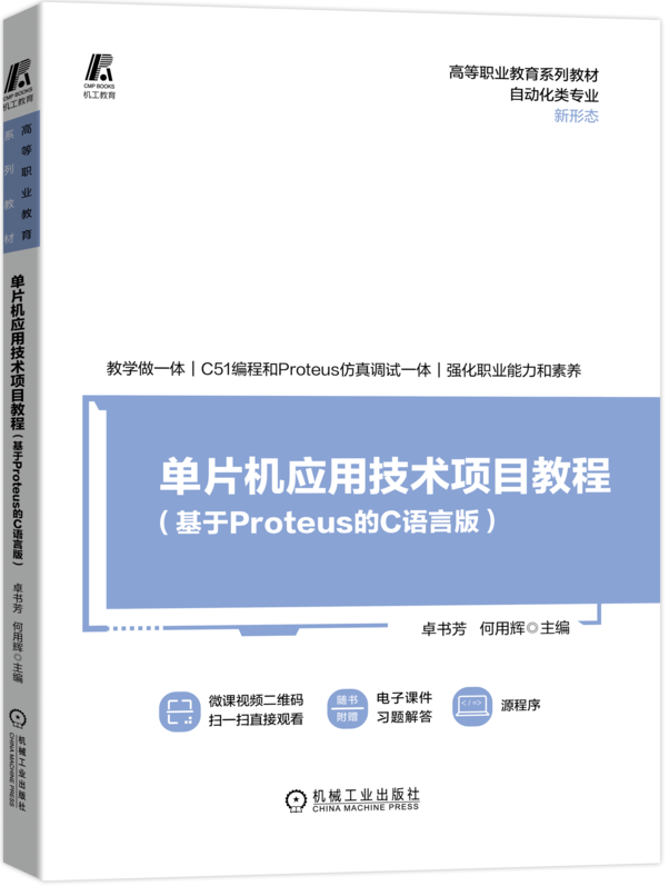 本书是按照项目导向、任务驱动的编写模式,以典型的单片机应用项目为载体,通过校企双元合作模式,开发的融合硬件电路分析、C51编程和Proteus仿真调试于一体的项目式教材。本书淡化原理、注重实用,软硬结合、虚实结合,将单片机应用设计与开发所必需的基础理论知识与实践技能分解到不同项目和任务中,由浅入深、循序渐进地进行阐述,突出学生应用能力的培养。本书结构紧凑、图文并茂、讲述连贯,适应“互联网+”职业教育的发展需求,配套的信息化资源丰富,含有电子课件、微课视频、源程序等,可扫描书中二维码随时查看微课视频,具有很强的可读性、实用性和先进性。 本书可作为高职高专、职业或应用型本科院校自动化类、电子信息类、计算机类等专业的教材,也可作为单片机应用开发人员的参考书。