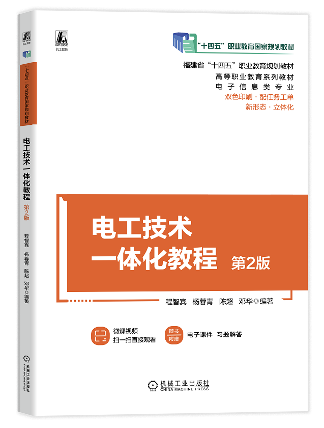 本书依据高等职业教育人才培养目标,以及学生就业岗位群的职业要求,遵循高职专业教育“必需、够用”的原则,详细讲解了电工技术相关知识。 本书共设置5个项目:项目1为电工基本常识与操作;项目2为指针式万用表的装配与调试;项目3为室内电气线路的设计与安装;项目4为小型变压器的制作与测试;项目5为三相异步电动机的典型控制。通过各项目的实施,将电工基础知识内容转变为实际应用的任务,突出知识的实用性、综合性和先进性,帮助读者迅速掌握电工基础知识和技能。并将具体的任务实施以“任务工单”的形式独立成册,使用更便捷。 本书可作为高等职业院校电子信息类、电气类、通信类、自动化类等专业的教材,也可作为从事弱电工程、电气工程及电子产品开发基础知识和技能培训人员的学习参考书。