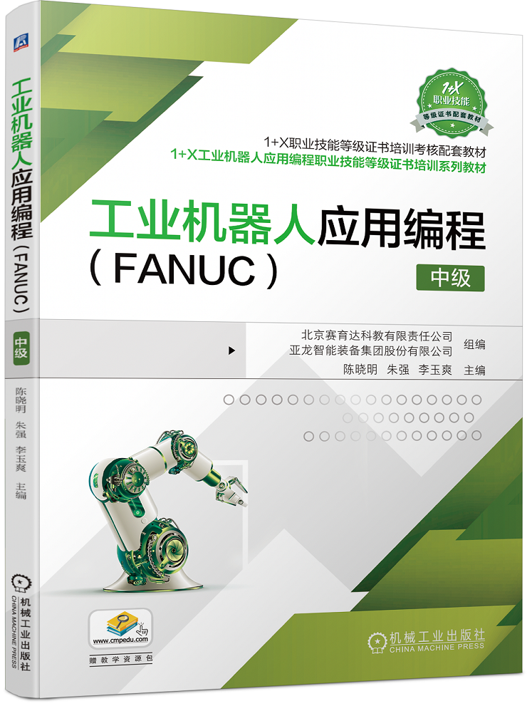 本书为“工业机器人应用编程”1+X职业技能等级证书培训考核配套教材。本书面向工业机器人应用编程人员,对照“工业机器人应用编程职业技能等级标准”,结合工业机器人实践应用中的典型工程案例,以项目引领、任务驱动的形式组织内容,使学生可以在实践应用中掌握工业机器人的相关知识、操作与编程技能。 本书共包含7个项目,分别为工业机器人装配应用编程、工业机器人视觉分拣应用编程、工业机器人RFID应用编程、工业机器人产品定制应用编程、工业机器人码垛应用离线编程、工业机器人写字应用离线编程、工业机器人的参数标定与测试。本书内容以职业技能要求、知识目标、能力目标、平台准备、知识准备、任务实施和任务评价等环节展开。 本书适合作为高等职业院校工业机器人技术专业以及装备制造类、自动化类相关专业课程的教材,也可作为工业机器人应用编程相关工程技术人员的参考资料与培训用书。 为便于教学,本书配有教学视频、电子课件等,选用本书作为授课教材的教师可登录机械工业出版社教育服务网(http://www.cmpedu.com),注册并免费下载。