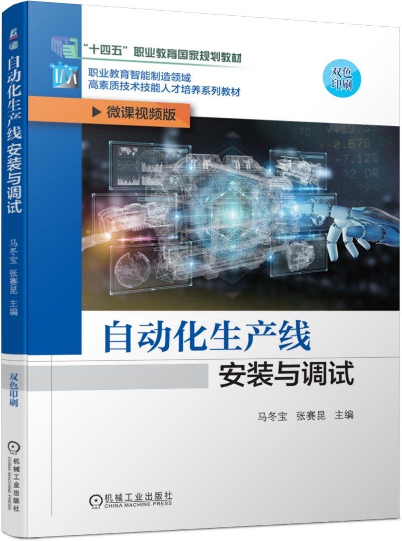 本书以全国职业院校技能大赛“自动化生产线安装与调试”项目所指定的YL335B型自动化生产线为载体,按照“一体化设计、结构化课程、颗粒化资源”的建构逻辑,系统地规划了全书的结构体系。本书内容主要涵盖机械结构、电气线路和传感器检测等自动化生产线的基础技术,以及气压传动、变频调速和交流伺服等运动控制技术,还包括自动化生产线基本组成单元的机电系统装调、PLC控制程序设计、人机界面设计、控制系统通信、系统运行及维护等方面的实践操作。 本书可作为高职高专自动化类、机电设备类和机械设计制造类等专业的自动化生产线安装与调试课程的教材,也可作为应用型本科、职业本科相关课程的教材及工业自动化技术工程人员的参考用书。 为方便教学,本书植入二维码微课,配套电子课件(PPT)、课程标准、授课计划、项目测评和项目评价等数字化学习资源。与本书配套的国家精品在线开放课程在中国大学MOOC平台网站上线,读者可以登录网站进行学习测试,获取每个项目的评分表等其他课程相关材料。凡选用本书作为授课教材的教师可以登录机械工业出版社教育服务网(www.cmpedu.com)注册后下载配套资源,本书咨询电话:010.88379564。