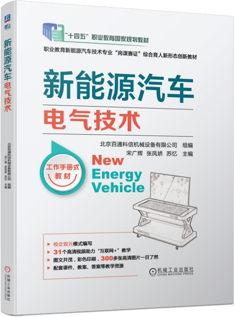 本书是新能源汽车相关专业“岗课赛证”综合育人系列教材,按照 新能源汽车装调与测试职业技能等级证书和全国职业院校技能大赛汽车类 相关赛项要求编写,主要内容包括新能源汽车电气维修基础的认知、新能 源汽车照明与信号系统的检修、新能源汽车仪表与报警系统的检修、新能 源汽车辅助电气系统的检修、新能源汽车暖风与空调系统的检修、新能源 汽车电池热管理系统的检修和新能源汽车整车电路故障的检修,共7 个项 目,计17 个学习任务,每个学习任务都按照学习目标、任务描述、获取 信息、学习任务单、任务实施、工作任务单和课证融通考评单进行教学闭 环设计。 本书为校企合作开发教材,按照工作手册式教材形式打造,借助“互 联网+”及信息技术,使本书内容立体化、可视化、数字化,能够满足 “人人皆学、处处能学、时时可学”的学习需要,为学习者提供“能学、 助教、助训、助考”的课程资源。 本书图文并茂,可操作性强,可作为新能源汽车技术及相关专业的教 学用书,也可作为新能源汽车装调与测试职业技能等级证书的考试用书, 还可作为新能源汽车整车及关键零部件制造、修理与维护等行业的整车制 造人员、汽车工程技术人员、维修技术服务人员等的培训用书和汽车爱好 者的科普读物。 为方便教学,本书配有电子课件、电子教案、答案等资源。凡选用本 书作为授课教材的教师均可登录www.cmpedu.com,以教师身份注册后免 费下载。或来电咨询,咨询电话:010-88379201。