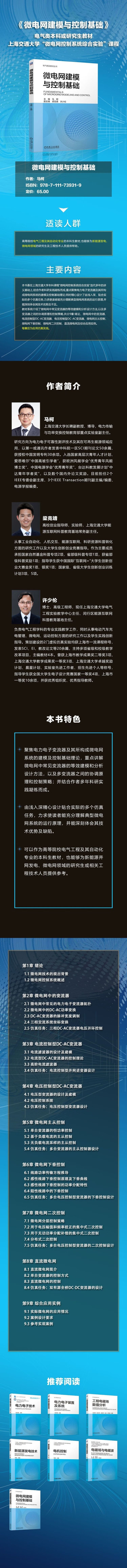 本书是在上海交通大学本科课程“微电网控制系统综合实验”迭代多年的讲义基础上,结合作者科研实践凝练而成,重点聚焦电力电子变流器及其所构成微电网系统的建模及控制基础理论;同时精心设计了由浅入深、贴合实际的多个仿真任务,力求使读者能充分理解典型微电网系统的运行原理,并能深刻体会其技术优势及不足。 教材系统介绍了微电网中常见变流器的等效建模和分析设计方法,以及多变流器之间的协调原理和控制策略,共分9章:绪论、微电网中的变流器、电流控制型DC-AC变流器、电压控制型DC-AC变流器、微电网主从控制、微电网下垂控制、微电网二次控制、直流微电网及综合应用实例。每章后为应用仿真实践。 本书可以作为高等院校电气工程及其自动化专业的本科生教材,也能够为新能源发电、微电网领域的研究生及工程技术人员提供帮助。