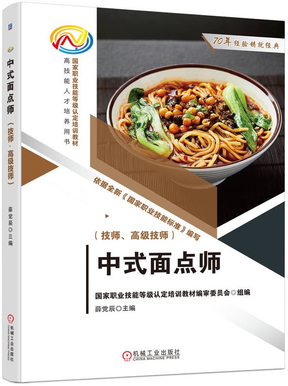 本书依据《国家职业技能标准中式面点师(2018 年版)》的要求,按照标准、教材、试题相衔接的 原则编写,介绍了中式面点师技师、高级技师应掌握的技能和相关知识,涉及风味面点制作、菜单设计 与创新、面点装盘与装饰、厨房生产管理、培训与指导、菜点生产、展台设计、厨房管理等内容,并配 有模拟试卷及答案。 本书理论知识与技能训练相结合,适用于职业技能等级认定培训、中短期职业技能培训,也可供中 高职、技工院校相关专业师生参考。