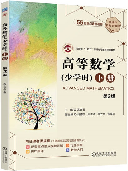 本套教材入选河南省“十四五”普通高等教育规划教材,在编写过程中,作者力求系统地讲解数学知识,使其由浅入深、重点突出、通俗易懂,同时,注重内容的实用性,打*号的为选学内容.本套教材分为上、下两册,上、下册教学参考学时各为60学时左右. 上册内容包括:函数与极限、导数与微分、导数的应用、不定积分、定积分.下册内容包括:多元函数微分学、二重积分、无穷级数、微分方程与差分方程.本套教材每节之后有练习题,每章之后有本章小结和复习题,书末有参考答案.本教材为下册. 本套教材可作为普通高等学校高等数学(少学时)课程的教材或参考书,与教材配套的电子教案内容齐全,视频资源包括知识点的讲解以及典型例题讲解,读者可通过“天工讲堂”小程序进行观看.这些资源将成为教与学有益的助手.